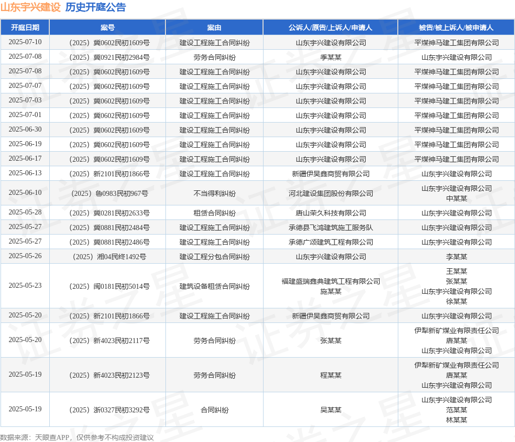 本站消息,根据天眼查APP显示,近日公布了一则山东宇兴建设有限公司作为原告/上诉人的开庭公告,详细内容如下: